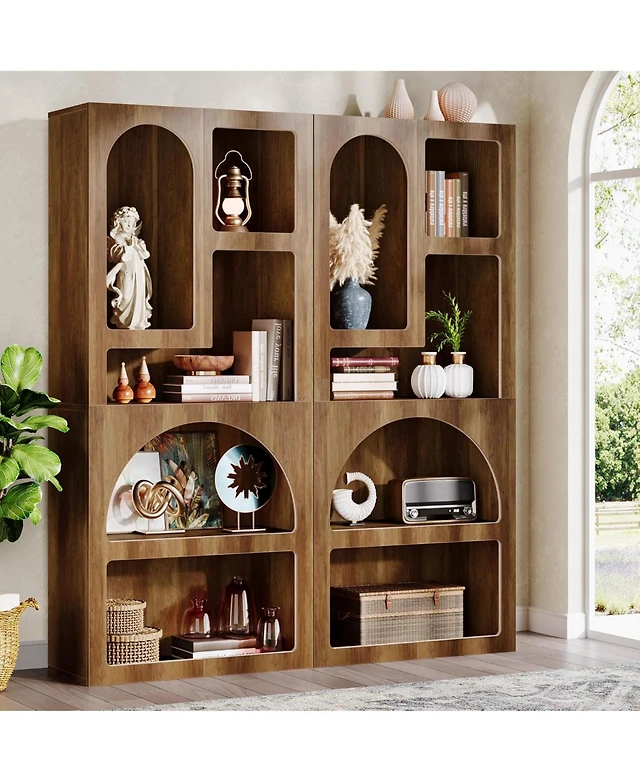 Famapy 12-Shelf White Wood Standard Bookcase With Adjustable Shelves Drawer