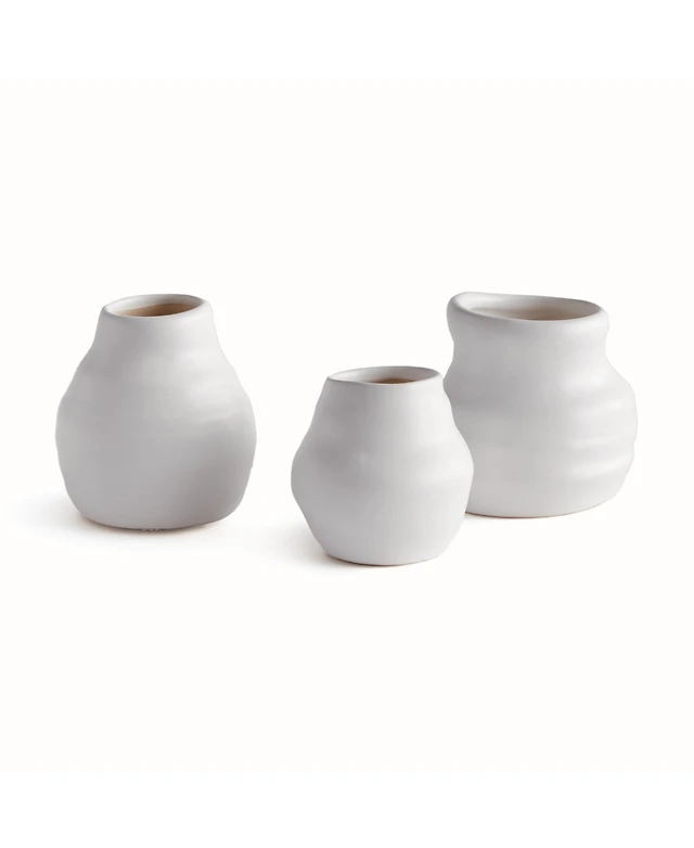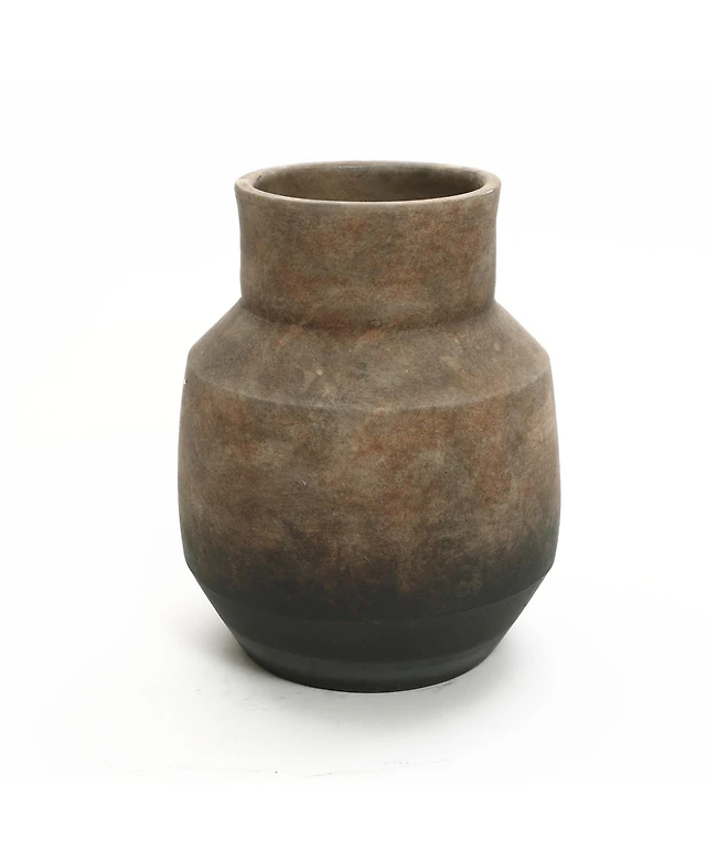 LuxenHome Rustic Gray with White Terracotta 10-Inch Round Vase with Handles