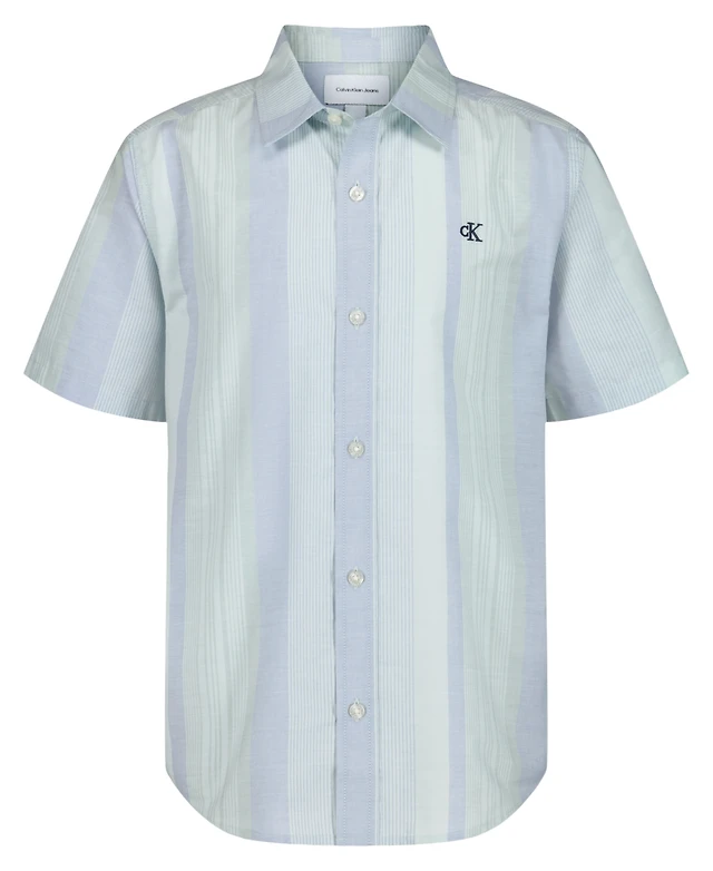 Calvin Klein Boys' 8-20 Vertical Stripe Short-Sleeve Woven Shirt