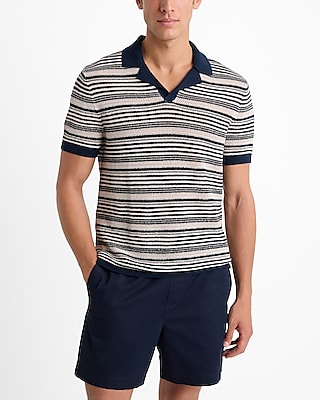 Striped Knit Linen-Blend Short Sleeve Sweater Polo