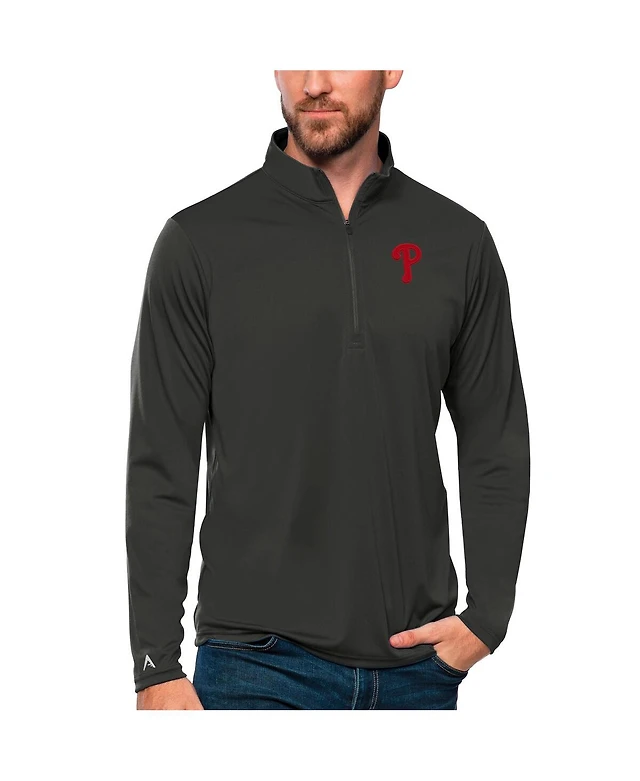 Antigua Men's Charcoal Atlanta Braves Tribute Quarter-Zip Pullover Top