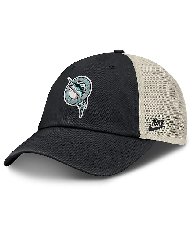 Nike Men's Black/Natural Florida Marlins Cooperstown Collection Club Trucker Adjustable Hat