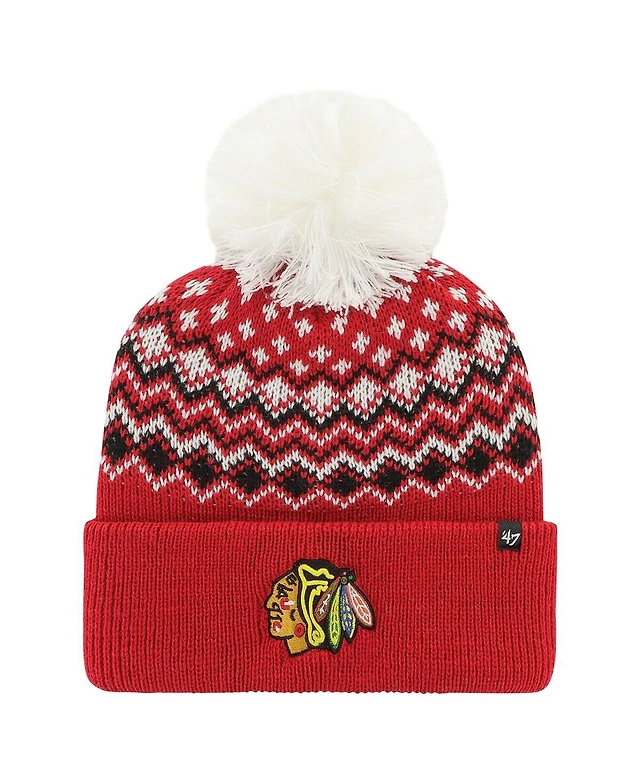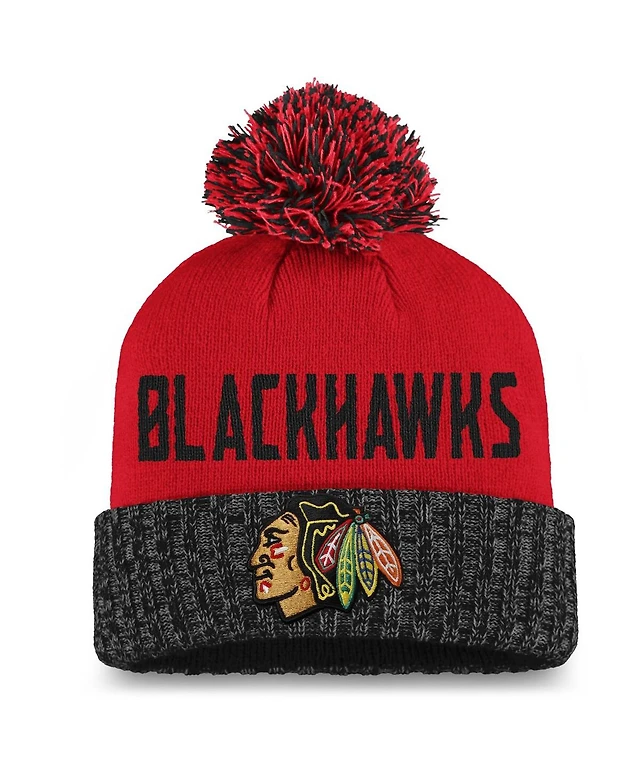 Women's Fanatics Red, Black Chicago Blackhawks Iconic Cuffed Knit Hat with Pom
