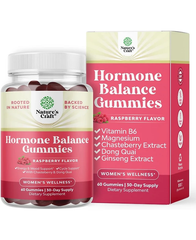Hormone Balance Gummies for Women | Pms Gummies and Cycle Support Supplements | Vitamin B6, Raspberry Flavor | 60ct