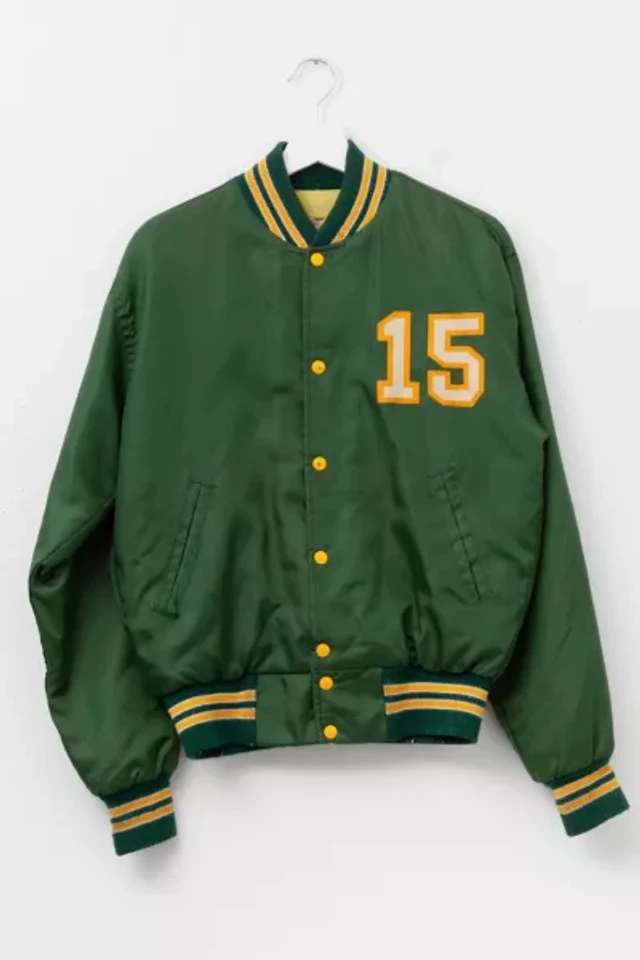 Vintage 1970s Green Yellow Graphic Baseball Jacket