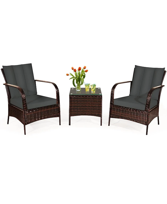 3PCS Patio Rattan Furniture Set Cushioned Sofa Coffee Table Garden
