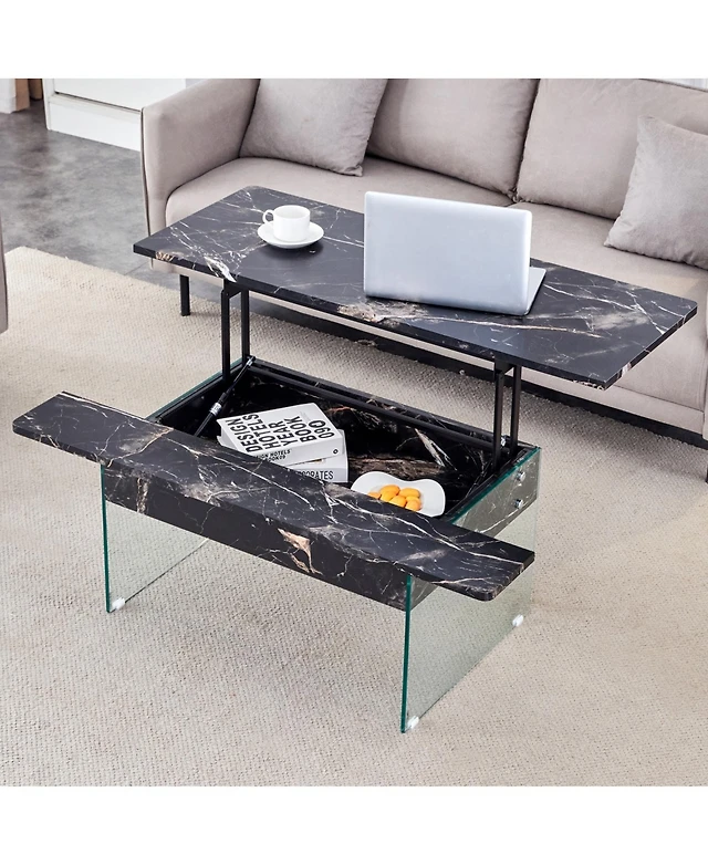 Streamdale Modern Black Glass Coffee Table Set for Living Room