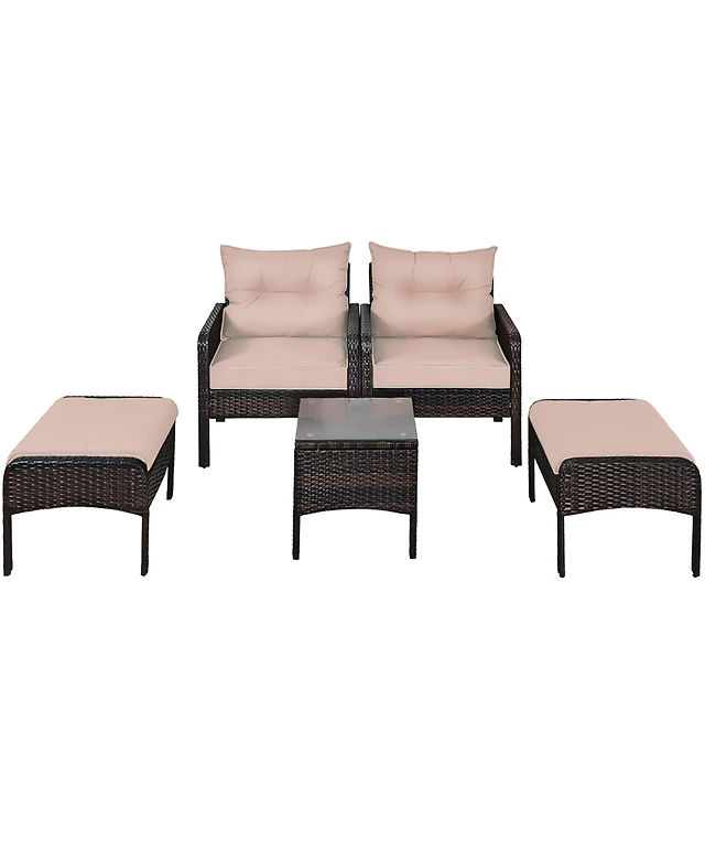 6 Piece Patio Conversation Sofa Set with Tempered Glass Coffee Table