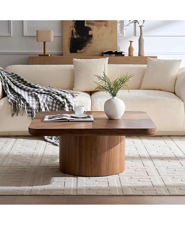 Streamdale Furniture Square Veneer Coffee Table Sliding Top with Storage in Natural Wood Grain 39.4"