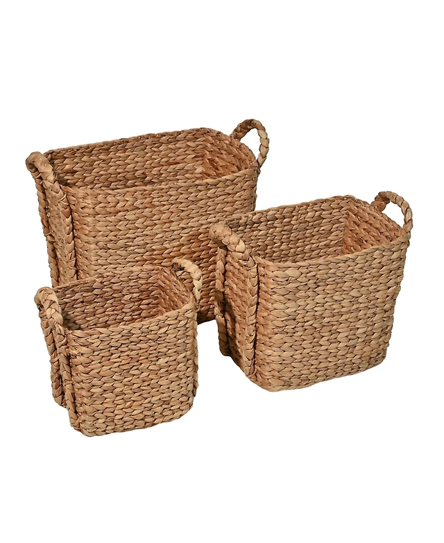 Wickerwise Water Hyacinth Rectangular Wicker Storage Baskets with Cutout Handles, Large
