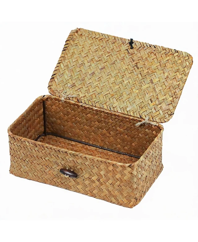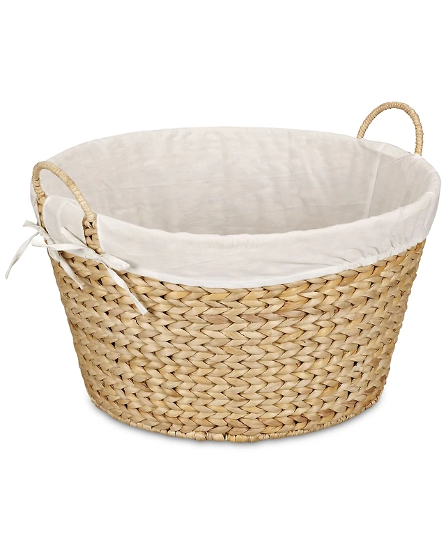 Household Essentials Wicker Storage Basket with Handles, Handwoven Water Hyacinth