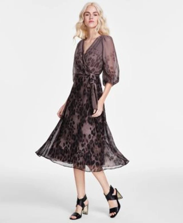Dkny Women's Short Sleeve Faux Wrap Midi Dress