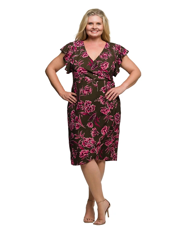Connected Women's Printed Faux-Wrap Sheath Dress