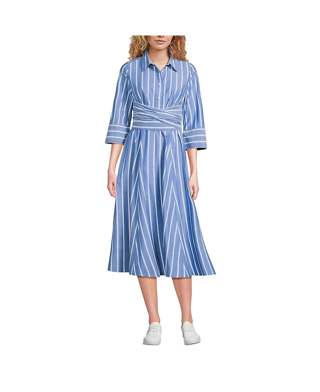 Lands' End Women's Cotton Modal Vneck Wrap Midi Dress