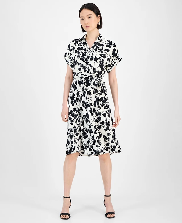 Womens Crewneck Wrap Tie Dress Created For Macys Xxs 4x
