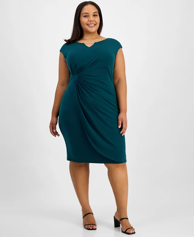 Connected Plus Elbow-Sleeve Wrap Side-Tie Jersey Dress