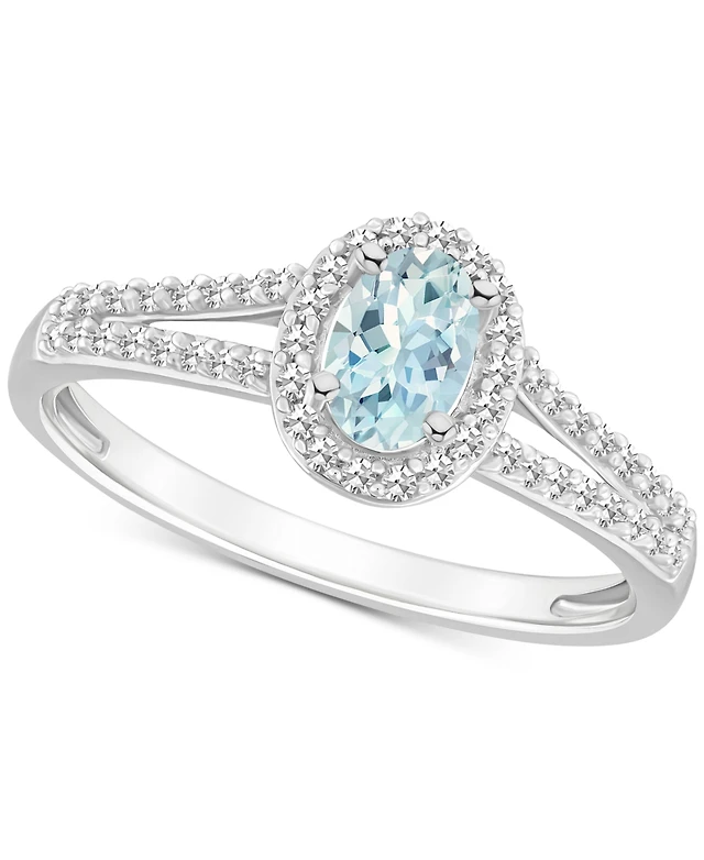 Aquamarine (2/5 ct. t.w.) & Diamond (1/4 Oval Halo Ring Sterling Silver (Also Opal)