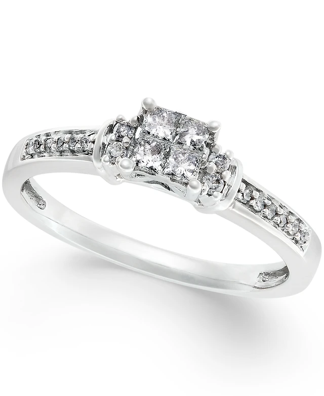 1/10 CT. T.w. Diamond Square Cluster Ring in Sterling Silver