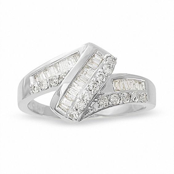 3/4 CT. T.w. Diamond Slant Engagement Ring in 14K White Gold