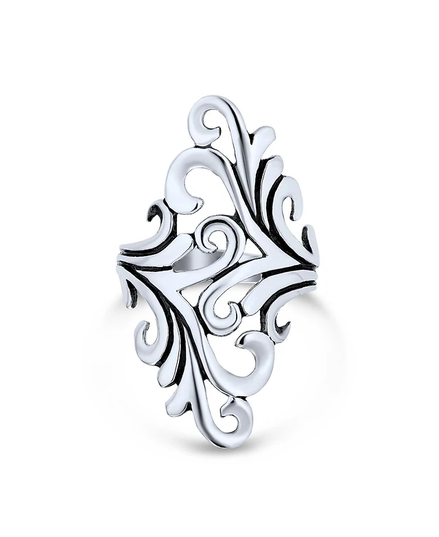Bling Jewelry Nature Swirl Leaf Vine Wrap Bypass Full Finger Armor Statement Ring Oxidized Sterling Silver