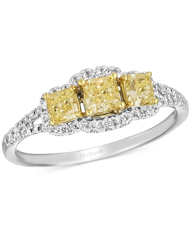 Previously Owned - 1 CT. T.w. Enhanced Yellow and White Diamond Split Shank Engagement Ring in 14K White Gold