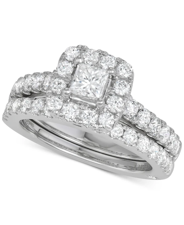 Gia Certified Diamond Princess Halo Bridal Set (1 1/2 ct. t.w.) in 14K White Gold