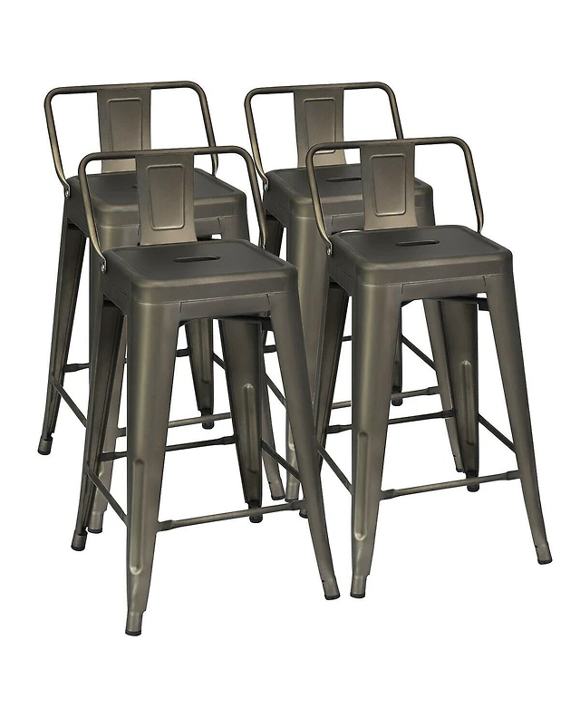 Sugift 25.5 Inch Hand-Antiqued Stool Set of 2 with Wider Padded Seat