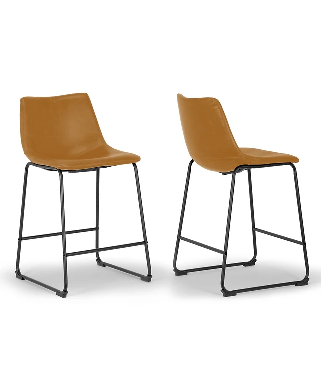 26 Inch Counter Height Stools Set of 2, Armless Industrial Faux Leather with Metal Legs-Maison Boucle