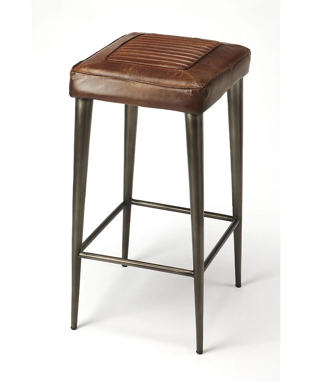 Glitzhome Set of 2 Fabric, Leatherette Bar Stool with Tapered Metal Legs