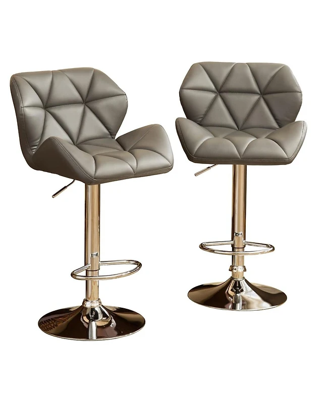 Streamdale Furniture Streamdale Set of 2 Gray Velvet Upholstered Bar Stools with Backrest & Footrest