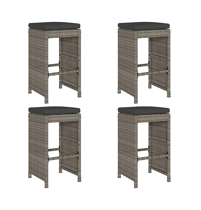 5PCS Patio Rattan Bar Table Stool Set Hidden Storage Shelf Cushion