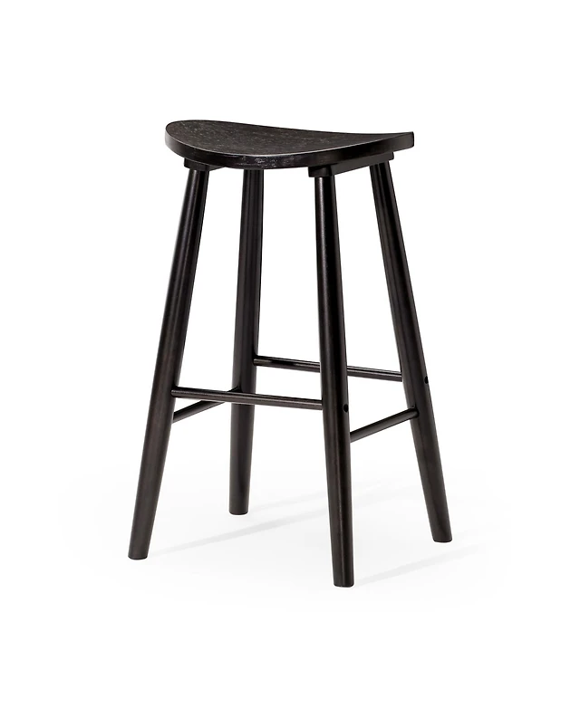 Maven Lane Luna Counter Stool in Rustic Black Wood Finish, Set of 3