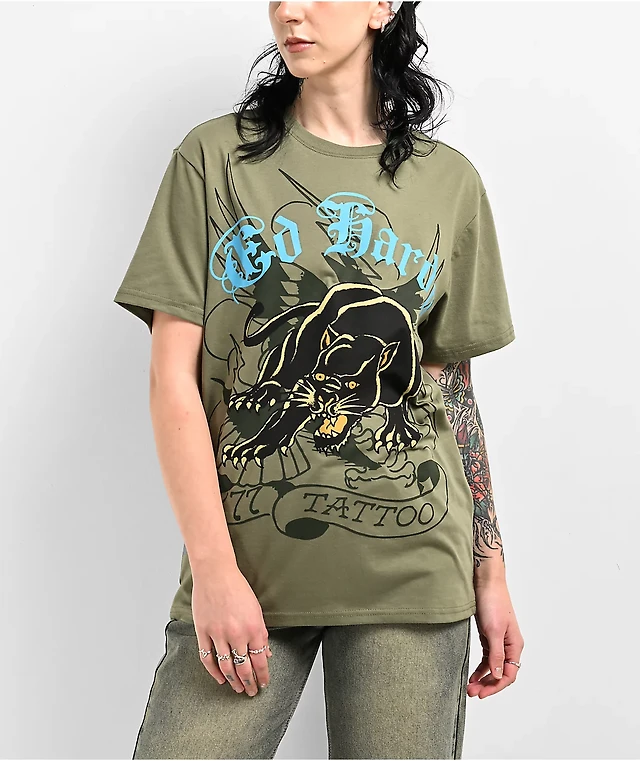 Ed Hardy Panther Flames Sunfade Grey T-Shirt
