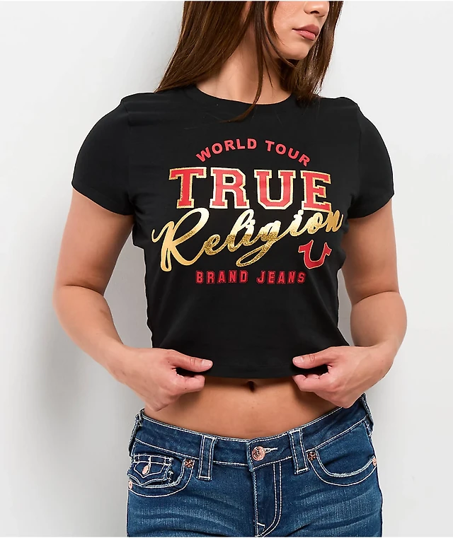 True Religion Crystal Groovy Buddha Sun Kissed Coral Crop T-Shirt