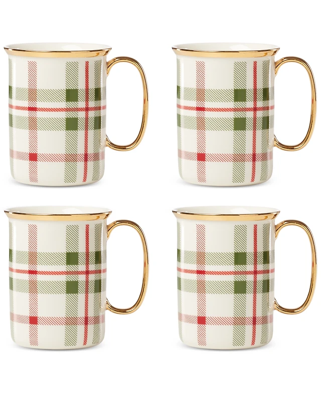 Lenox Holiday Plaid Gold-Trimmed Mugs, Set of 4