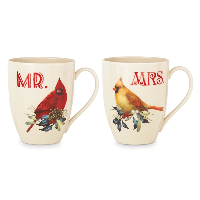 Lenox Winter Greeting Cardinal Mr. & Mrs. Mug Set