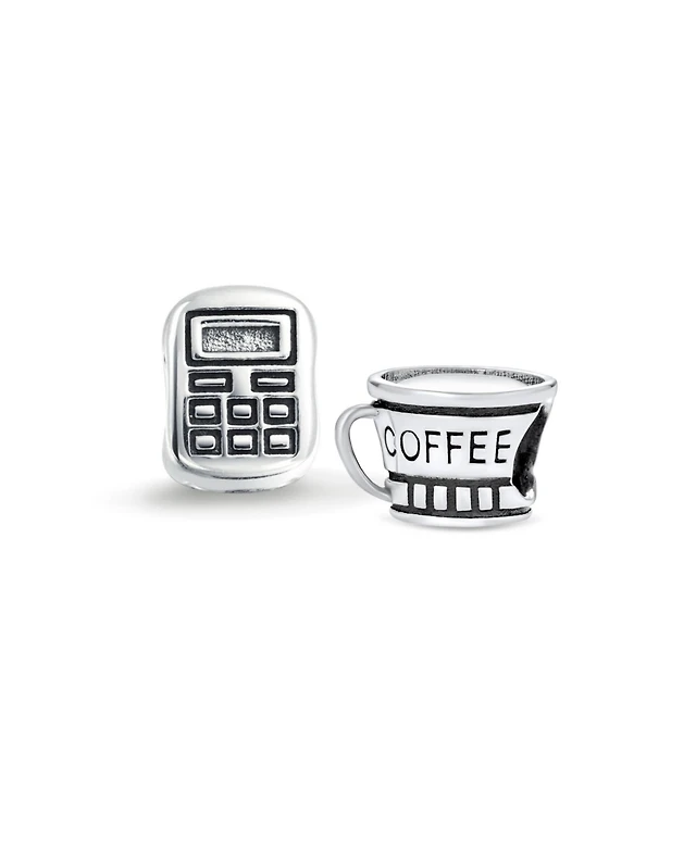 Bling Jewelry Set of 2 Latte Travel Mug Cup Coffee and Calculator Charm Bead Sterling Silver