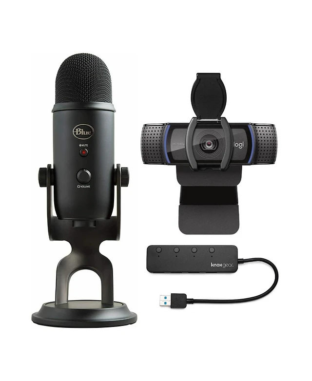 Blue Microphone Yeti Usb Microphone Blackout with Webcam and 4-Port Usb Hub