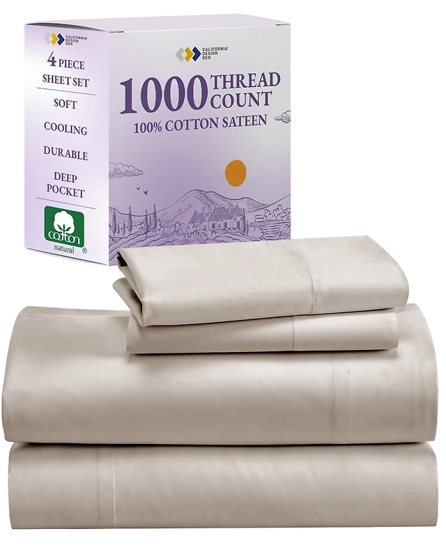 Cariloha Resort 4-Piece Sateen Sheet Set |Coconut Milk | Cal King Viscose Material Thermal-Regulating, Extra Soft Cooling Sheets