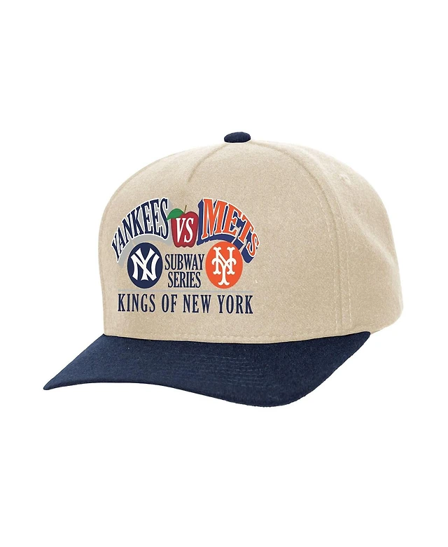 Mitchell Ness Cream New York Yankees vs. New York Mets Subway Series Matchup Pro Pinch Snapback Hat