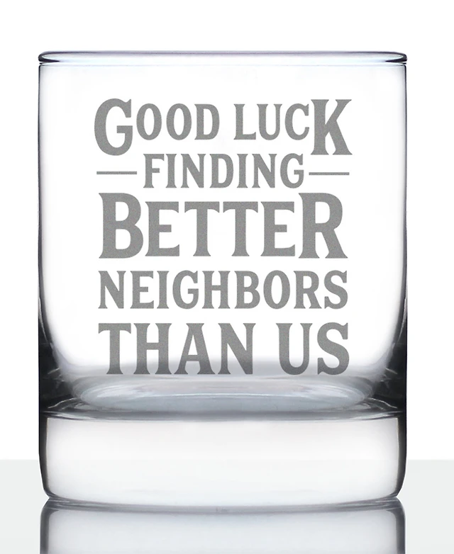 Bevvee Good Luck Finding Better Neighbors than us Neighbors Moving Gifts Whiskey Rocks Glass, 10 oz