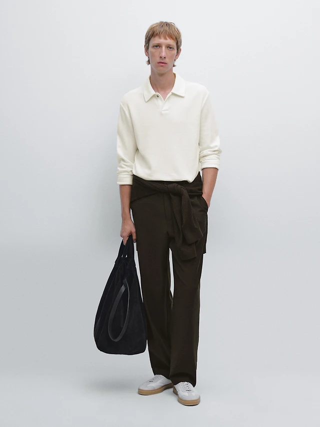 Textured piqué polo shirt with long sleeves
