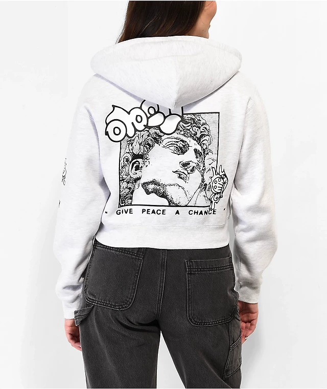 Obey Oval Extra Heavy Light Grey Zip Hoodie