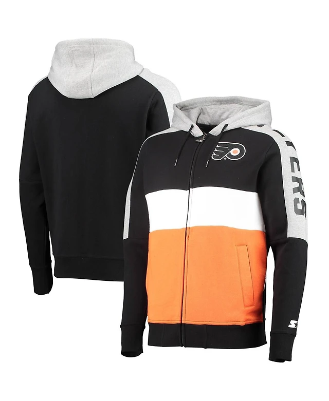 Men's Starter Black, Orange Philadelphia Flyers Playoffs Color Block Full-Zip Hoodie
