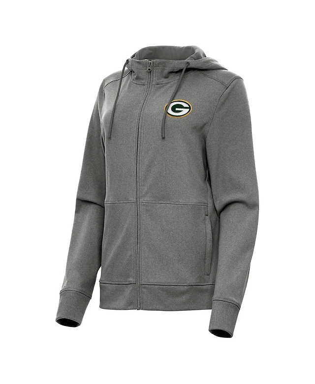 Antigua Women's Heather Charcoal Green Bay Packers Seeker Full Zip Hoodie Jacket