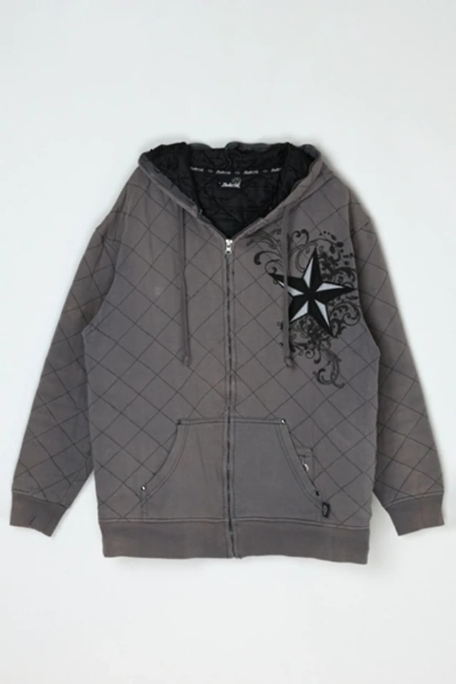 Vintage Y2k Quilted Zip-Up Graphic Hoodie
