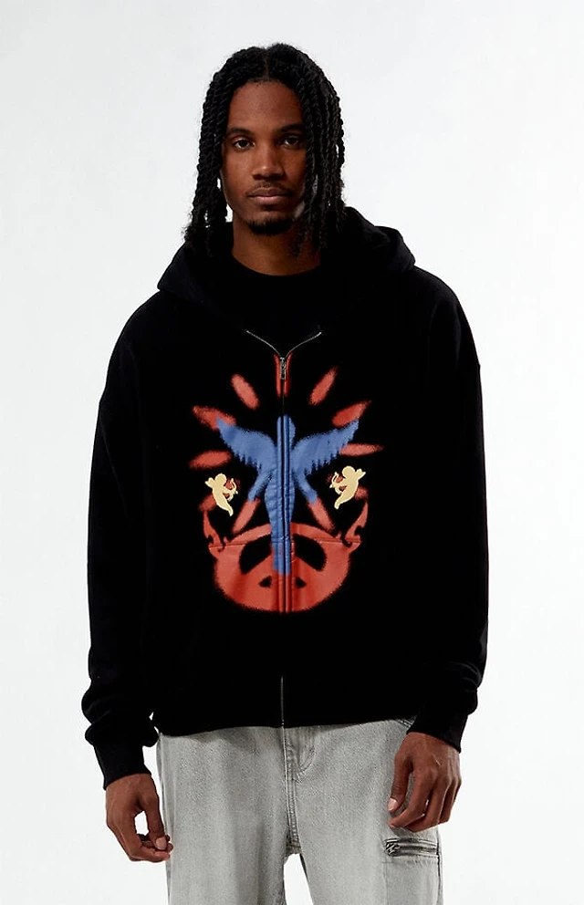 Ed Hardy Flower Skull Pink Crop Zip Hoodie