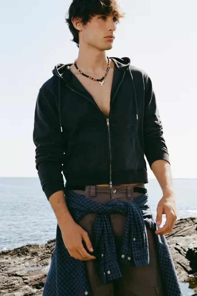 BDG Bonfire Solid Zip-Up Hoodie Sweatshirt