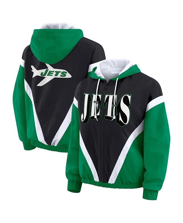 Women's Wear by Erin Andrews Navy, White New England Patriots Color Block Light Weight Modest Crop Full-Zip Hoodie