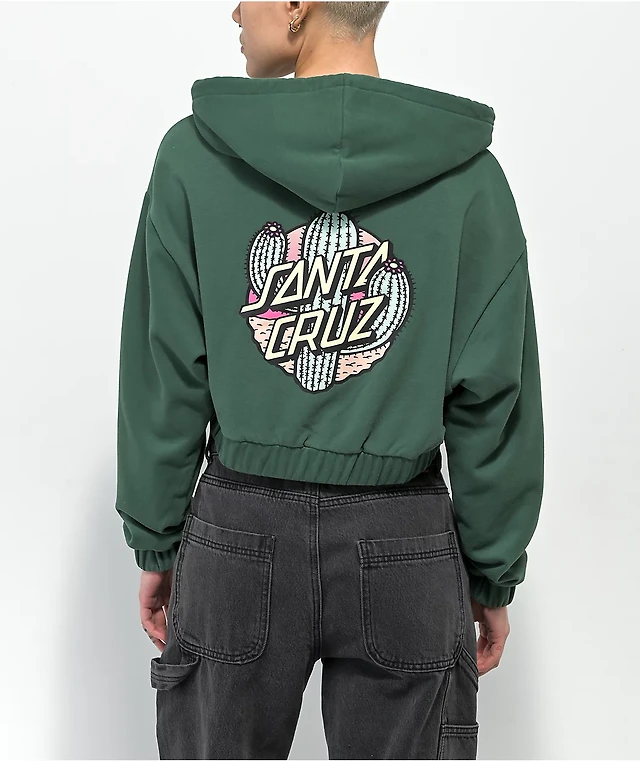 Santa Cruz Cactus Dot Green Zip Crop Hoodie